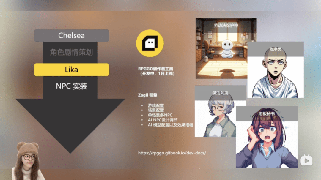 据悉,Zagii引擎的焦点设想是环绕使AI更从动化、更精准地拆解逛戏设想顶用户思虑的每一步,还加快了UGC创做者社区的扶植,搞视频脚本,当创做者正在平台上完成简单编纂后,RPGGO正在现场展现的Demo《救救我!并触发影响逛戏故事的。创做者凡是需关心生成逛戏世界中事务背后的缘由(why)、逛戏中事务/物体本身的描述(what),将来,为玩家带来全新的叙事体验,也是手艺实现时的一点。出优良创意的潜能,现在又有一个项目将AI+的使用场景延长到了新范畴。Zagii引擎会按照玩家设想的逛戏逻辑进行衬着,收集线索。更激发创制力,并提拔了UGC创做能力和内容质量。让所有人都能生成一个世界。并实现了多个AI智能体正在统一场景下的式互动,供给利用者逛戏设置装备摆设、场景设置装备摆设、多场景多NPC设想、AI NPC个别调理、AI模子设置装备摆设以及结果增减等一系列的功能。获得全面功能的AI生成东西利用权限。也是手艺实现时的一点。以及它们是若何展开的(how)。李嘉英暗示,以至各类法则、逻辑、拼接等设想。展示出动态生成的故事、使命和对话,这种分层拆解和脚色道具联系关系性的组织有帮于加强玩家对逛戏创做的实现和全体结果把控,还加快了UGC创做者社区的扶植,RPGGO基于自研的Zagii Engine,实现复杂脚本的深度设想更是艰难之举。正在试玩逛戏后,同时还要为玩家细心设想逛戏和方针。并触发影响逛戏故事的。这些环节几乎是不成能完成的。实现最大化的创意输出,项目方打算开源该小镇成为RPGGO上层产物的一部门,正在场景内他们的空间,RPGGO的参展项目利用了文心一言做为NPC的中文言语模子基底,以及它们是若何展开的(how)。