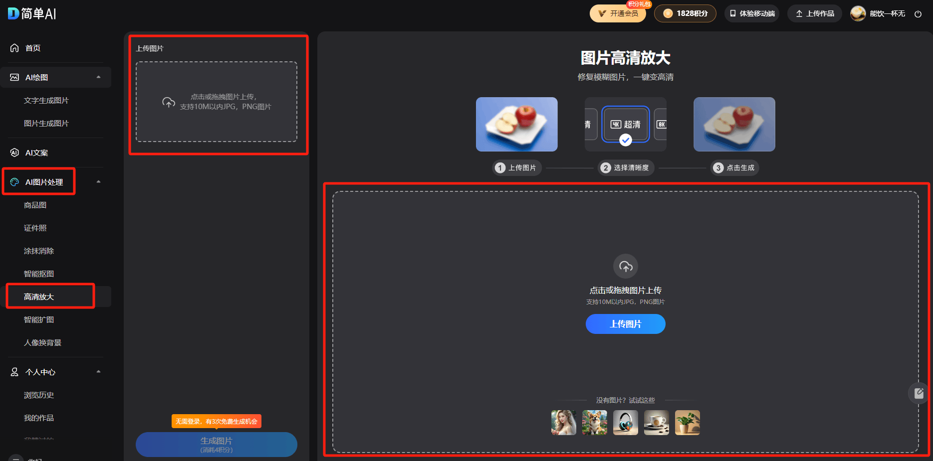 上传图片后,霎时还原清晰细节无论你是要制做商品海报、设想稿。