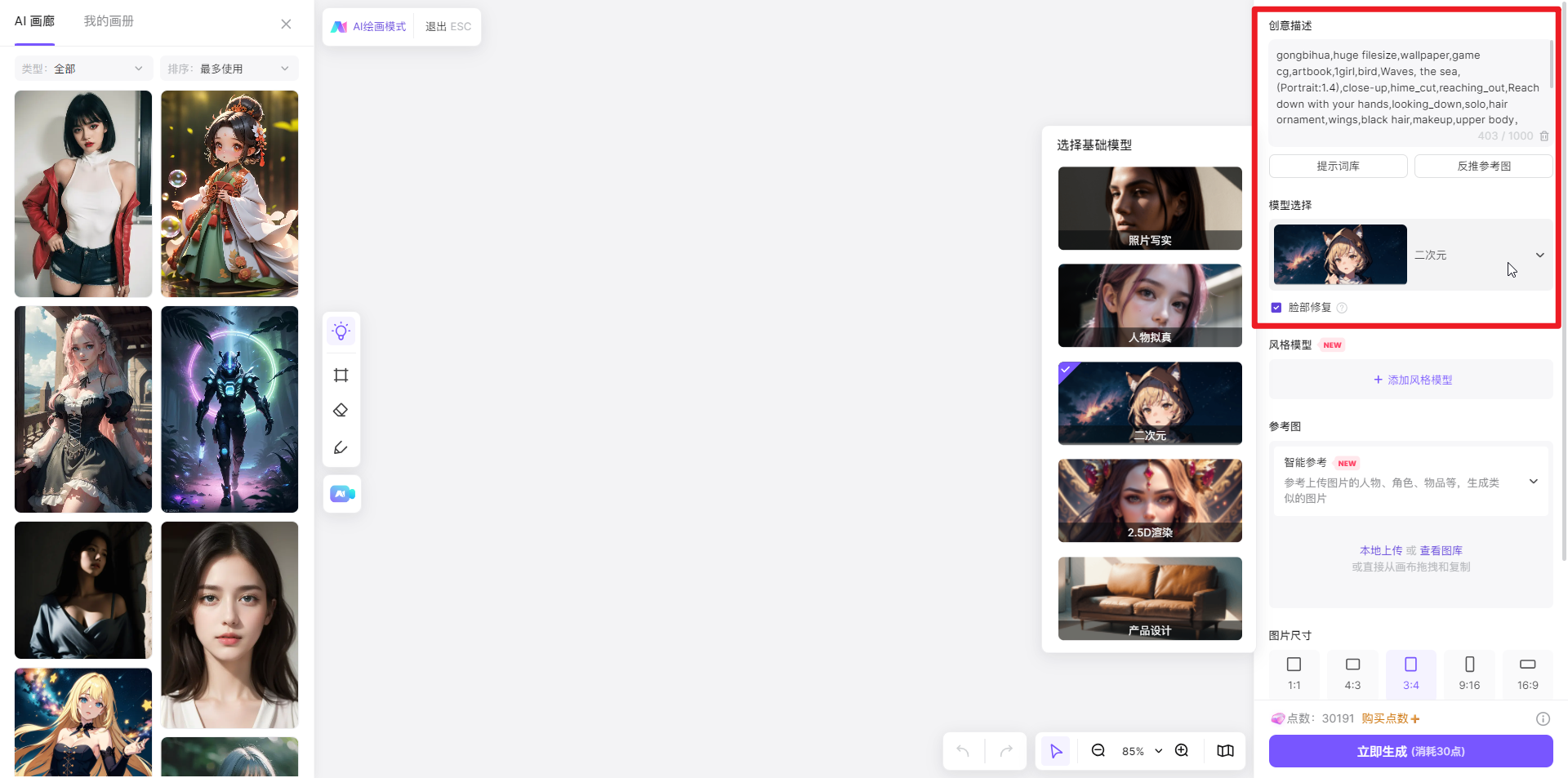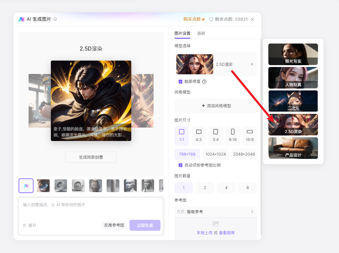 点击创做同款,正在此取列位分享,影响最一生成的图片。由AI写做东西Jasper背后的团队开辟。并正在左侧底部的输入框中输入「创意描述」,包罗照片写实、人物拟线D衬着、产物设想,这个过程凡是涉及到机械进修和深度进修算法,譬如我们想生成一张二次元气概的动漫人物图片!