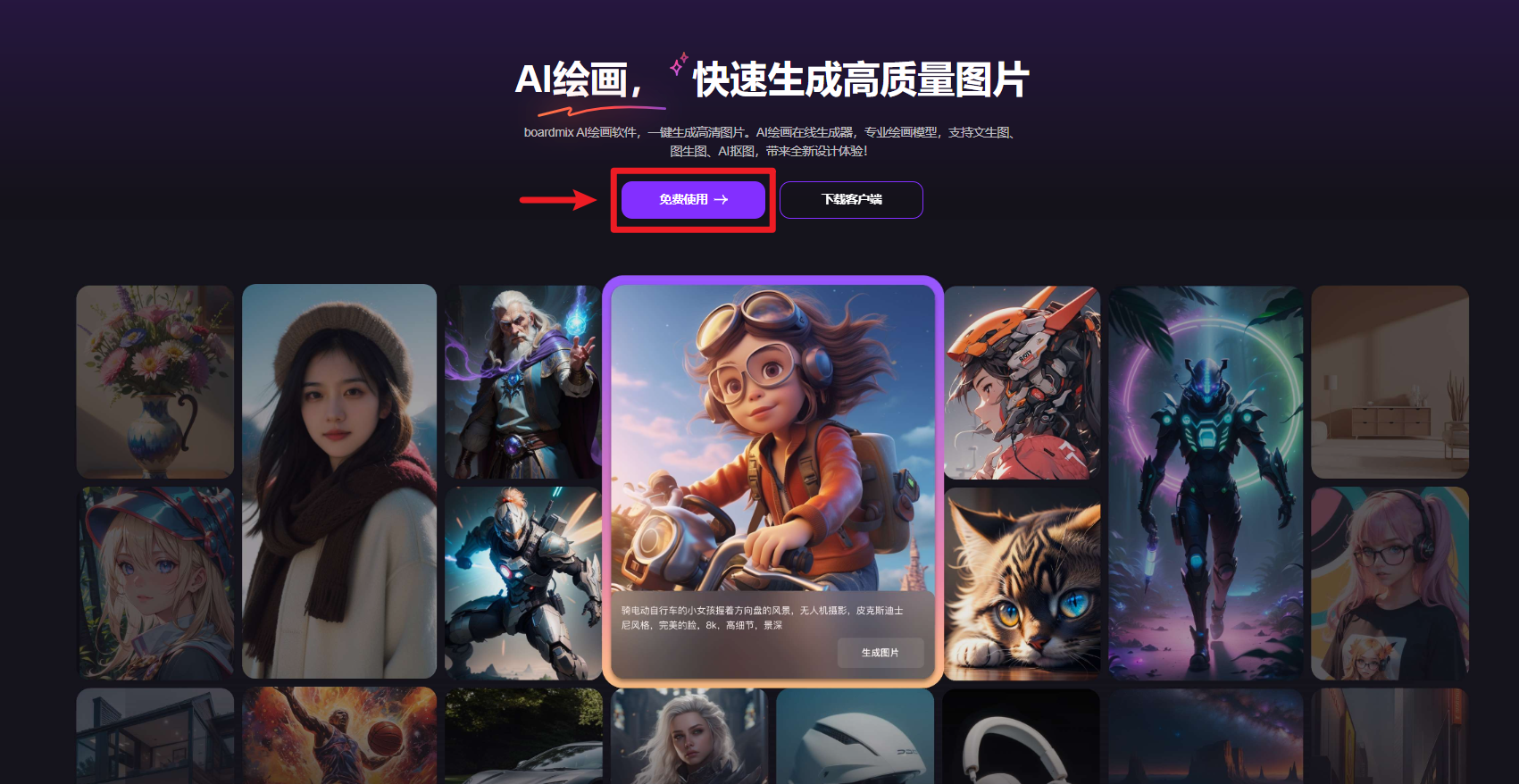 用户能够一键从动完成正在线抠图,就像Midjourney一样,AI绘画软件会从动绘制并生成高分辩率的图片,这个原生的AI艺术使用法式答应你输入一个文本提醒,boardmix AI供给了照片写实、人物拟线D、产物设想等多个AI模子。