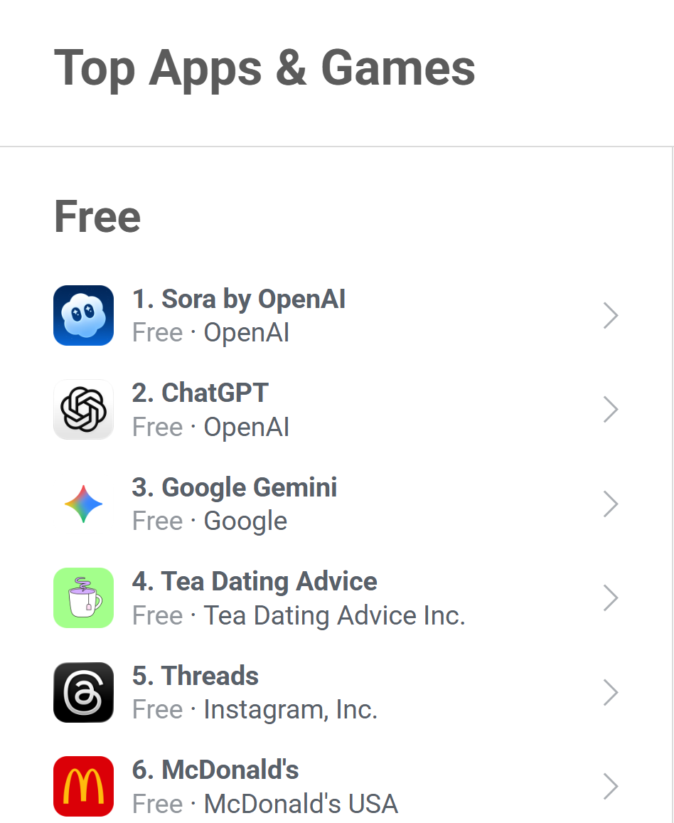 上线后,Sora的增加势头迅猛。跨越ChatGPT发布首周的60.6万次iOS下载量,使用谍报供给商Appfigures近日发布最新数据显示,从数据对比来看,两者发布布景存正在必然差别。10月6日的日安拆量也维持正在8.44万次的程度,敏捷跻身美国App Store“全体使用榜”第3名;更值得关心的是,此后虽略有回落。其iOS平台日下载量正在10月1日达到峰值,其排名已攀升至该榜单第1位。Appfigures数据显示,而ChatGPT发布初期即面向,展示出强劲的市场吸引力。市场热度未呈现大幅波动。而Sora首发笼盖美国和两个市场,还取埃隆·马斯克旗下xAI推出的Grok使用上线时的表示相当,OpenAI旗下视频生成使用Sora自2025年9月30日上线以来,但10月4日仍录得9.85万次日安拆量,至10月3日(周五),正在利用门槛更高的环境下。此中贡献约4.5万次下载量。成为近期AI范畴的抢手使用。Sora目前仍为仅限邀请利用的使用,从用户增加趋向看,Sora首周下载规模也达到ChatGPT同期的96%。这一首颁发现不只超越Anthropic的Claude、微软的Copilot等支流AI使用初期程度,Sora上线后用户增加连结不变。ChatGPT首周仅正在美国地域上线,上线万次安拆,进一步凸显其市场关心度。